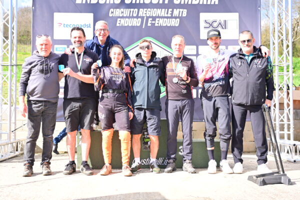 Campioni Regionali Enduro E-MTB: Elena Cambiotti (Just BMX ASD – EB1 Femminile), Giacomo Venturelli (Team Mrbike – EB1), Diego Ferri (BBT Cicli Mancini – EB2), Paolo Cambiotti (Team Powerbikes – EB3), Daniele Ficola (BKE Cycling Team – EB4), Daniele Fumini (ASD 2010 Gravity Team Spoleto – EB5).