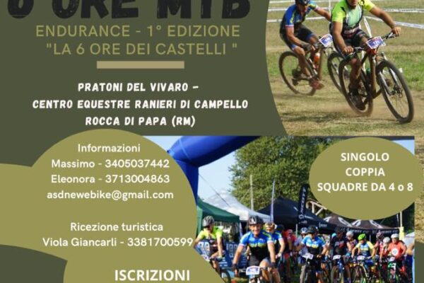 Si riparte anche con il settore Endurance nel Lazio grazie all’Asd New E-Bike che il prossimo 6 Giugno organizzerà la "6 ore dei Castelli" una manifestazione MTB alla sua prima edizione