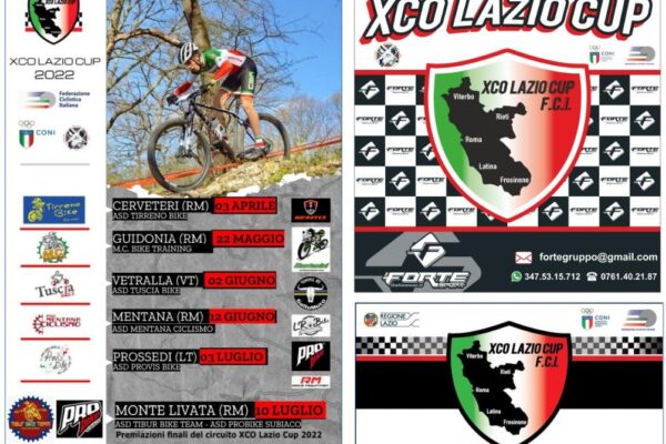 Si ripropone per il secondo anno nel calendario laziale il circuito XCO LAZIO CUP , ideato da un gruppo di società del settore MTB che si sono consorziate creando una challenge di ben 6 prove distribuite fra le province di Roma , Viterbo e Latina. Si comincia il 3 Aprile con la terza edizione del Cross Country XCO Etrusco Città di Cerveteri, organizzato dalla Tirreno Bike a Cerveteri in un contesto suggestivo nelle vicinanze della necropoli etrusca. La gara avrà la validità di TOP CLASS per le categorie Master. La seconda tappa dell’XCO Lazio Cup, fissata per il 22 Maggio, porterà i partecipanti a Guidonia per l’organizzazione della MC Bike Training di Massimo Crisanti. La prova assegnerà le maglie di Campione Provinciale XCO 2022 per il comitato FCI romano presieduto da Agildo Mascitti. Il 2 Giugno la carovana dell’XCO Lazio Cup si sposterà nel viterbese per l’appuntamento di Vetralla curato dalla storica società locale Tuscia Bike. Una tappa importante per gli appassionati del cross country poiché sarà prova unica di Campionato Regionale per tutte le categorie. Da Vetralla si torna in provincia di Roma il 12 Giugno con la tappa di Mentana, prova TOP CLASS per le categorie agonistiche, allestita dalla Mentana Ciclismo nella suggestiva macchia di Gattaceca. Il penultimo atto del circuito è in programma il 3 Luglio a Prossedi, in provincia di Latina, per l’organizzazione della Provis Bike. La gara avrà la validità di Campionato Provinciale XCO per il comitato pontino guidato dall’attivissimo Massimo Saurini. Chiusura in grande stile il 10 Luglio alle pendici di Monte Livata in località Campo dell’Osso con la prova organizzata dalla Tibur Bike in collaborazione con la Pro Bike Subiaco. In questa location sarà allestita anche la premiazione finale del circuito che si svolgerà subito dopo la gara. Saranno premiati i primi cinque di ogni categoria e le prime tre società della classifica per Team.