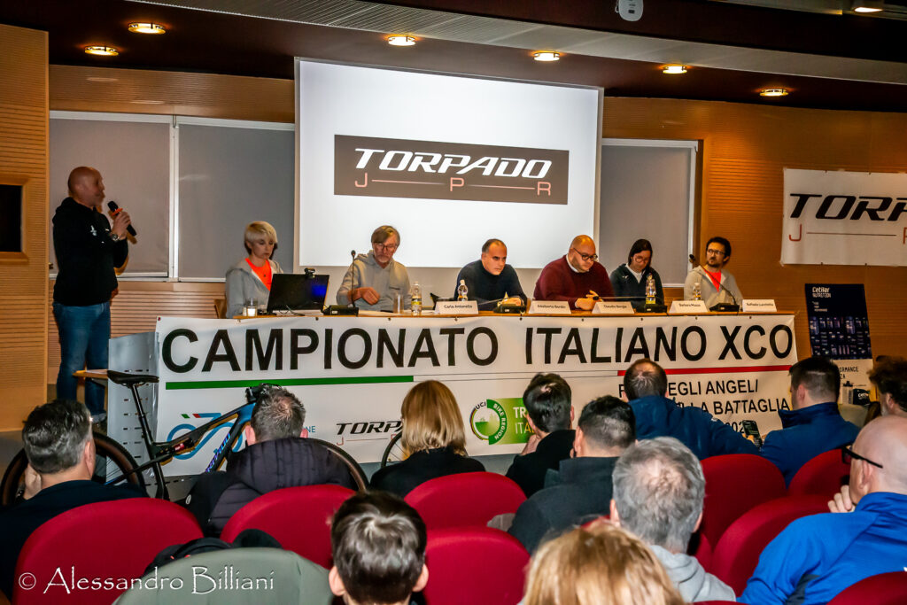 La serata è iniziata con il presidente della FCI, Cordiano Dagnoni, in collegamento da Milano, che ha salutato i presenti in sala e ha ringraziato il Comitato Organizzatore Torpado JPR per l’impegno nell’organizzare eventi sempre di altissimo livello; un impegno coronato quest’anno dall’assegnazione, da parte della FCI, dei Campionati Italiani Assoluti XCO (la disciplina olimpica della mountain bike) ed E-bike (le mountain bike a pedalata assistita).