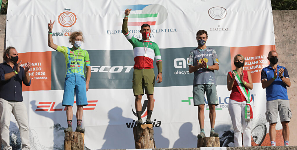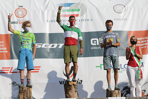 Poi Marco Aurelio Fontana ha saggiamente amministrato la situazione, anche se nell’ultimo giro Fruet spianato sulla sua bici ha cercato l’aggancio, ma invano. Fontana è arrivato impennando sul traguardo con soli 3”, sufficienti però per vestirlo in tricolore. Bella stretta di mano tra i due, con Martino Fruet a ricordare che Fontana se l’era ritrovato davanti sul podio ai Campionati Italiani di Pejo. Per il terzo posto, dal secondo giro in poi Vittorio Gambirasio ha gestito la corsa con grande autorità. Dietro è finito l’ex pro su strada Riccardo Chiarini e quindi il redivivo Mirko Pirazzoli.
