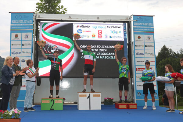 Su il sipario del Campionato Italiano Assoluto MTB di Pergine Valsugana. Maglia tricolore consegnata dal presidente federale Dagnoni. Domani il grande appuntamento XCO con le categorie UCI