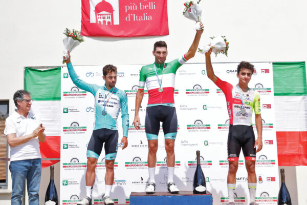 Ci sono volute 4 ore, 18 minuti e 20 secondi a Samuele Zoccarato per tornare a indossare la maglia di Campione Italiano Gravel, il padovano che ha inaugurato l’albo d’oro della rassegna nazionale nel 2022 ad Argenta (FE) con il successo di Golferenzo riappende nell’armadio l’ambita maglia verde-bianco-rossa. Lungo i 126 km della prova, svoltasi su tre giri del tosto circuito, lo stradista di San Giorgio delle Pertiche ha conquistato la vittoria in solitaria grazie a un attacco decisivo durante la seconda tornata. “La gara è stata dura, il percorso bello e molto tecnico. Io da stradista puro un po’ soffrivo a tenere le ruote di chi fa anche MTB o Gravel, ma la mia condizione è buona e sono riuscito ad attaccare al momento giusto” afferma il vincitore di giornata. Doppietta di lusso per la VF Group Bardiani CSF Faizanè con il secondo posto di Luca Colnaghi. Autore di un grande finale, il lecchese e compagno di squadra di Zoccarato ha avuto la meglio su Filippo Agostinacchio proprio lungo l’ultima salita che precedeva il traguardo. Anche a causa della rottura del deragliatore, il campione italiano in carica di Ciclocross U23 della Beltrami TSA Tre Colli deve accontentarsi del terzo posto, che lo lascia comunque soddisfatto.