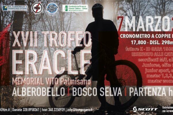 Il Team Eracle prosegue la sua forte vocazione nel mondo della mountain bike proponendo un classico di inizio stagione per il movimento pugliese: il Trofeo Eracle-Memorial Vito Palmisano giunto alla 18°edizione e in programma domenica 7 marzo.