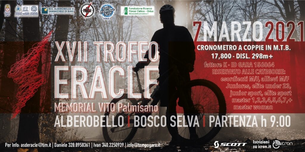Il Team Eracle prosegue la sua forte vocazione nel mondo della mountain bike proponendo un classico di inizio stagione per il movimento pugliese: il Trofeo Eracle-Memorial Vito Palmisano giunto alla 18°edizione e in programma domenica 7 marzo.