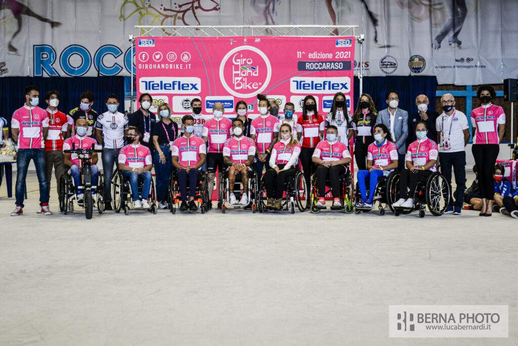 A tifare e premiare i vincitori della terza gara del GiroHandbike: Renato di Rocco VicePresidente UCI; Helenia Massari, Componente Commissione Nazionale Ciclismo Paralimpico FCI; Mauro Sciulli Presidente regionale CIP Abruzzo, Luca Arrara Presidente FCI Milano; Francesco Di Donato Sindaco di Roccaraso.