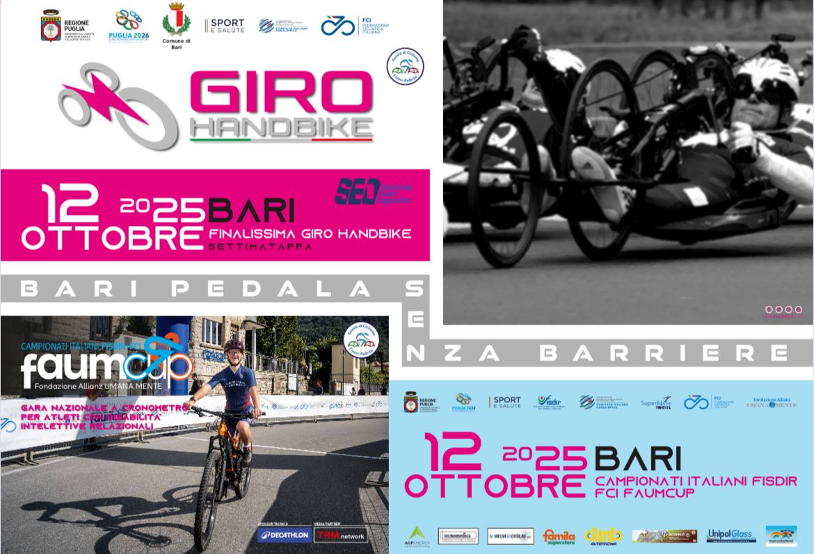 «Siamo entusiasti di proseguire il nostro impegno per uno sport sempre più inclusivo – dichiara Giuseppe Marzano, Presidente A.S.D. Scuola di Ciclismo Franco Ballerini Bari. Nel 2025, la seconda edizione di Bari Pedala Senza Barriere rappresenta un nuovo traguardo: ospiteremo il Campionato Italiano FISDIR-FCI Faum Cup e la tappa finale del Giro Handbike, rafforzando la nostra esperienza nell’organizzazione di eventi a livello nazionale. Ringrazio la Fondazione Allianz UMANAMENTE, la FCI e la FISDIR per la fiducia che ci consente di riportare il Campionato Italiano Crono sul lungomare di Bari. Un grazie speciale anche all’ASD SEO e al Presidente Fabio Pennella per averci affidato la tappa finale del Giro Handbike, riconoscendo il valore della collaborazione tra realtà associative.
