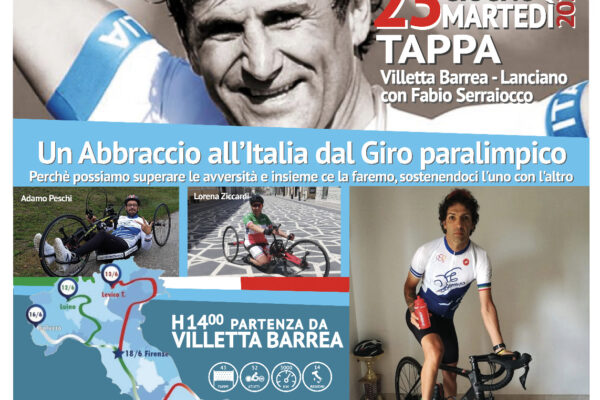 Il giorno dopo, mercoledì 24, la carovana di Obiettivo Tricolore ripartirà da Lanciano per scendere verso la Puglia con pit stop a Termoli: di nuovo Serraiocco in bici che sarà affiancato per l’occasione da Emma Marcelli, 35enne di Atri, paraciclista di categoria C5, ex professionista con all’attivo quattro partecipazioni al Giro d’Italia ma dopo la diagnosi di sclerosi multipla si aggrega alla squadra di Zanardi.