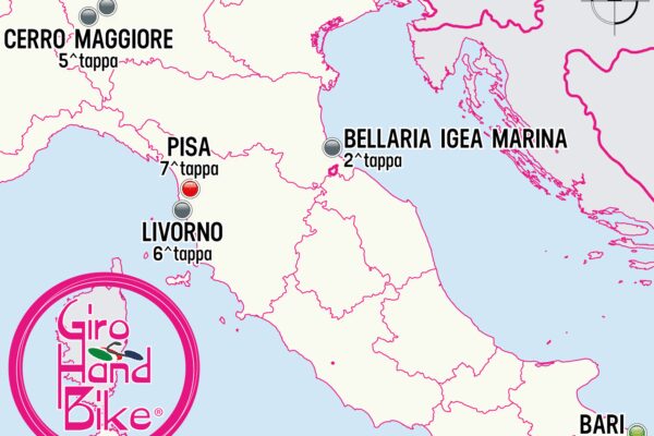 Anche il Giro Handbike ha le sue maglie firmate per l’edizione 2022 dal talentuoso Damiano Rizzo: maglia rosa TELEFLEX; maglia bianca G3 OFFICINE MECCANICHE; maglia rossa SAN MARINO MAIL; maglia nera PMP.