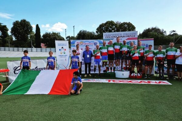 Il Velodromo Enzo Sacchi di Firenze ha ospitato l’edizione 2022 dei Campionati italiani di ciclismo paralimpico su pista, evento organizzato dall’A.S. Aurora, in collaborazione con Ciclo Abilia, patrocinato dal Comune di Firenze presente l’assessore allo sport Cosimo Guccione. Intervenuti anche il presidente della Federazione Ciclistica Italiana Cordiano Dagnoni, Saverio Metti e Massimo Porciani rispettivamente presidenti del CRT di ciclismo e del settore toscano paralimpico, quello provinciale Leonardo Gigli. Presente alla rassegna tricolore anche il c.t. della Nazionale Paralimpica Rino De Candido. E’ stata una manifestazione in cui si è ammirato il carattere, la grinta e la forza di coloro che si sono cimentati sull’anello fiorentino. Le prove in programma quelle del chilometro e dei 500 metri cronometrati, oltre all’inseguimento sui 3 e 4 chilometri. Undici le maglie tricolori assegnate a Firenze. Nel Time Trial hanno vinto Maurizio Romeo (Team Equa), Ilaria Brugnoli (Restart Sport), Jacopo Guerrini (Foligno Freeride), Michele Pittacolo (Pittabike), Mirko Pini (Active), Paolo Ferrali (Anmil Sport Italia), Domenico Fantini (Natura e Sport), Claudia Cretti (Team Equa), Ilenia Colanero (Restart Sport). Nella prova dell’inseguimento 4 km ha vinto la coppia formata da Maurizio Romeo e Paolo Simion del Team Equa, mentre in quella femminile sui 3 km hanno prevalso Claudia Cretti (Team Equa) nella categoria WC5 e Ilenia Colanero (Restart) nella WC2. Miglior tempo nell’inseguimento individuale sui 4 km di Emanuele Bersini (Pol. Disabili Valcamonica) in 4’51”3244. Infine nella prova speciale valida per il Campionato Toscano categoria MB, ha prevalso Marco Lemmetti (Vigili del Fuoco Massa Carrara).