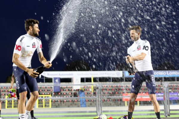 Fiorenzuola d’Arda (PC), 06/08/2022 – Alla fine Filippo Ganna e Michele Scartezzini ce l’hanno fatta: la coppia azzurra, a Fiorenzuola in gara con la maglia “Caffè Ramenzoni”, ha conquistato in rimonta la 25^ edizione della 6 Giorni delle Rose. Per loro anche i punti per il ranking Uci della madison, dal momento che la gara a coppie valeva come prova di classe 1 Uci per questa specialità. Ganna e Scartezzini hanno conquistato la vittoria nella generale con 69 punti, davanti ai polacchi Bartosz Rudyk e Daniel Staniszewski (Acef), arrivati a 64. Terza piazza per Stefano Moro e Matteo Donegà (Alu Tecno), che avevano iniziato la madison finale da leader della generale.