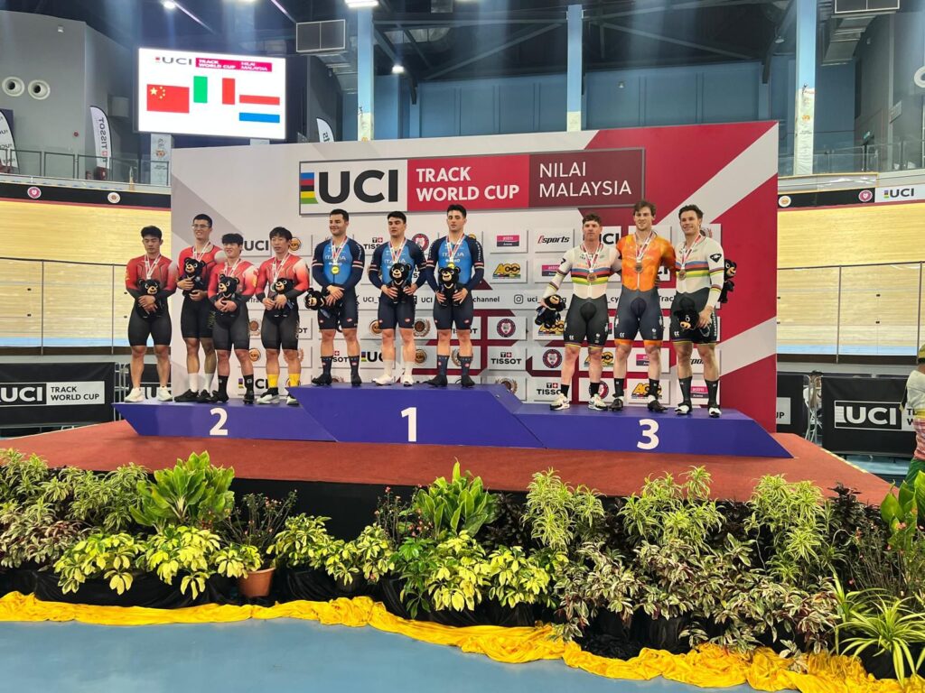 L’Italia della pista chiude una giornata da protagonista nella terza prova di Coppa del Mondo di Nilai, in Malesia, conquistando una storica vittoria nel team sprint maschile e aggiungendo altri due podi con l’inseguimento a squadre uomini e con Matteo Fiorin nell’eliminazione.