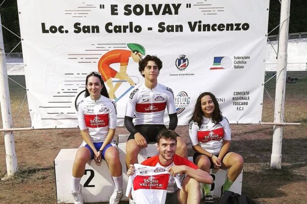 San Vincenzo (LI) – Assegnati altri cinque titoli toscani su pista nel corso della riunione svoltasi sull’anello del velodromo “E.Solvay” a San Carlo. Non assegnato invece quello della velocità donne esordienti per lo scarso numero delle partecipanti. Sulla rassegna brilla la doppietta realizzata dall’allievo Fabio Del Medico del Velo Club Scuola Ciclismo di Empoli già in luce anche in ambito nazionale, che ha vinto sia la prova della velocità che il Keirin, dimostrando le ottime qualità che possiede questo atleta che ama la multidisciplina con il suo impegno anche nel fuoristrada e nelle gare su strada, sia in linea che a cronometro. Del Medico ha sicuri margini di miglioramento e siamo certi che i tecnici azzurri lo stanno già seguendo con attenzione. Oltre alle due maglie di Del Medico, l’altro titolo nel settore maschile per la velocità esordienti è stato conquistato dal brillante Massimo Mezzasalma del Team Valdinievole che ha battuto in finale il bravo Lorenzo Luci mentre terzo si è classificato Gaggioli. Due le maglie anche il settore femminile con le consuete soddisfazioni per la Ciclistica San Miniato-S.Croce sull’Arno. Nella prova del Keirin si è infatti affermata Letizia Tasciotti, mentre nella velocità il successo ed il titolo è andato a Silvia Formisano davanti alla sua compagna di squadra Tasciotti. La riunione sulla pista di San Carlo è stata completata da alcune gare di contorno che hanno fatto registrare i successi dell’esordiente Luciano Gaggioli (Team Valdinievole) nella corsa a punti su Capodarca e Guidi, dell’allieva Maddalena Simeoni (Michele Bartolo Academy) nella gara Eliminazione davanti a Di Girolamo e Tasciotti e dell’allievo Francesco Matteoli (Team Valdinievole) su Merola e Nannini.