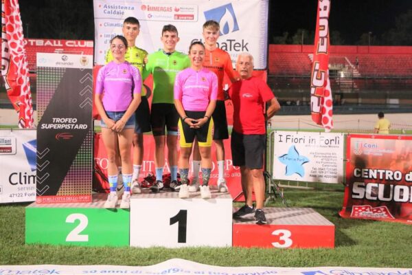 I vincitori delle prove sono stati premiati dall’azienda Climatek, Claudia Campana e Paolo Francia. Amici dello sport e dei giovani che hanno consegnato le medaglie ai ragazzi sul podio. La giornata ha visto inoltre il coinvolgimento anche dei giovanissimi, che hanno combattuto con passione ed energia da “grandi”. Tornando al Superpistard, le maglie ai vincitori sono state consegnate dal presidente del Consorzio delle Società Ciclistiche Romagnole, Fausto Tardozzi.