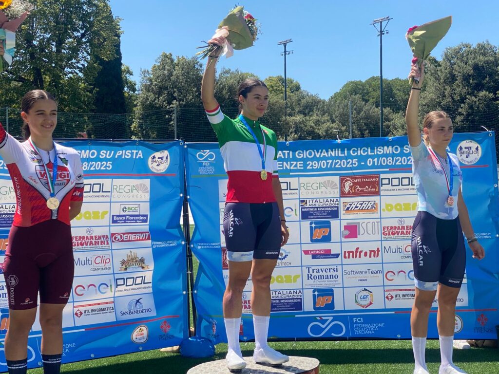 Firenze,1° agosto 2025 – Con la sessione mattutina e l’assegnazione degli ultimi 4 titoli in palio, si sono conclusi sulla pista del Velodromo Enzo Sacchi a Firenze organizzati dalla società fiorentina Pol. Virtus Settimo Miglio del presidente Paolo Traversi, i Campionati Italiani Giovanili iniziati martedì pomeriggio alla presenza del presidente della Federazione Ciclistica Italiana Cordiano Dagnoni. Hanno presenziato all’intera manifestazione il vicepresidente della FCI Saverio Metti e il presidente del Comitato Regionale Toscana Luca Menichetti, oltre a diversi altri ospiti. Nell’ultima giornata doppietta per la Lombardia con l’allievo Riccardo Longo nell’inseguimento individuale e con Sara Peruta fra le allieve. Le ultime due spettacolari gare quelle del Madison Allievi con i successi dei due friulani Gioele Taboga e Niccolò Marzinotto e della coppia femminile dell’Emilia-Romagna formata da Jolanda Sambi e Teodora Castelli.