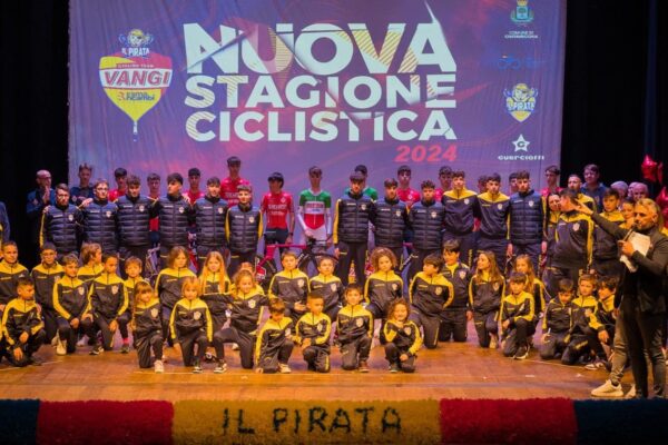 Una presentazione in grande stile quella del team Vangi Sama Ricambi – Il Pirata, che si è svolta sabato all’interno del Teatro Traiano di Civitavecchia davanti a tutta la famiglia della società pontina ed alle autorità sportive e civili invitate. Durante la cerimonia sono state presentate le squadre Giovanissimi, Esordienti, Allievi e per concludere hanno fatto il loro ingresso i ragazzi Juniores che vede la ditta Vangi come main sponsor del sodalizio Toscano-Laziale. Presente alla cerimonia, accompagnato dal presidente del club Andrea Campagnaro, Fabrizio Vangi titolare insieme al fratello dell’azienda toscana con sede a Calenzano in provincia di Firenze. Sarà proprio la squadra Juniores ad aprire la stagione per i giovani grigio-rossi domenica nella nazionale Gran Premio Giuliano Baronti in provincia di Pistoia. La squadra da questa stagione sarà diretta da uno dei direttori sportivi più vincenti di questo decennio come Matteo Berti proveniente dalla Work Service, che ha sposato il progetto Campagnaro/Vangi dopo aver conquistato titoli europei, nazionali e regionali durante la sua ancora giovane carriera. Al termine della serata è stato proprio Campagnaro a fare la prima dichiarazione di questo 2024: «Siamo entusiasti e felici, la presentazione ci ha regalato un’esperienza emozionante». «Ringrazio il comune di Civitavecchia per la loro disponibilità, gli sponsor, le famiglie e tutto lo staff. Speriamo di confermare le nostre aspettative e con la squadra juniores puntiamo in alto». Inoltre, la scuola di ciclismo, aperta a partire dai 5 anni, è guidata da Vanessa Casati, una residente di Civitavecchia con anni di esperienza nella città portuale. Presente fra gli altri alla cerimonia il presidente del CR Lazio Maurizio Brilli che si è complimentato con il presidente Campagnaro per l’ennesima grande stagione allestita dalla Vangi Sama Ricambi Il Pirata e per il gran numero di atleti che ogni anno riesce a coinvolgere.