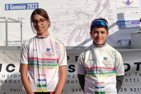 Osservati speciali gli esordienti primo anno alla loro prima vera esperienza nell’agonismo: vittoria e titolo regionale FCI Puglia per Gabriele La Notte della Ludobike davanti a Marco Sicuro (Scuola di Ciclismo Tugliese Salentino), Luigi Altamura (Avis Bike Ruvo), Stefano Castellano (Kalos), Enrico Mariano (Kalos), Michele Lorusso (Andria Bike), Antonio Arena (Asd Belvedere-Ciclone), Alessandro Esposito (Kalos) e Nicolò Cucci (Scuola di Ciclismo Tugliese Salentino).