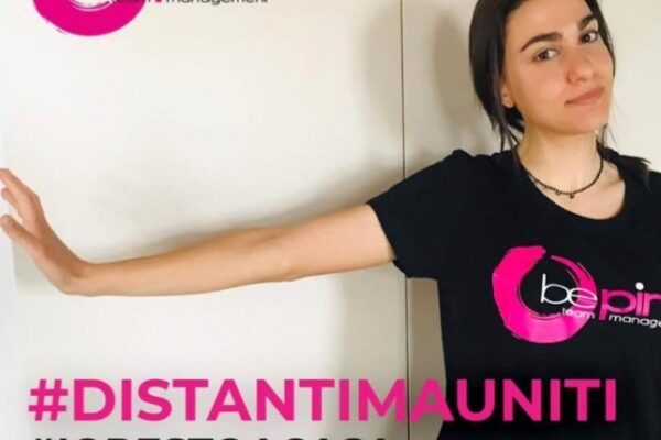La campionessa mondiale ed europea dell’inseguimento a squadre juniores, Camilla Alessio insieme a tutte le compagne della sua nuova squadra, la BePink ha aderito alla campagna social di sensibilizzazione “#DISTANTIMAUNITI #IORESTOACASA”