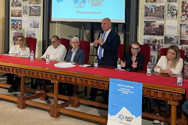 In una affollatissima Sala Castello Caetani di Fondi è stato presentato il convegno “Siamo tutti Happy Bike”, appuntamento promosso dall’omonima Associazione Sportiva impegnata da 3 anni in una scuola di ciclismo inclusiva. Alla presenza dell’Europarlamentare Salvatore De Meo, del Sindaco di Fondi Dottor Beniamino Maschietto, dell’Assessore ai Servizi Sociali Sonia Notarberardino e del Vice Presidente della Provincia di Latina Vincenzo Mattei gli associati hanno voluto raccontare il loro anno sportivo e portare all’attenzione della platea l’importanza di educare allo sport e utilizzarlo come strumento di inclusione per una nuova idea di unicità. La Happy Bike ASD coniuga fin dalla propria costituzione un’anima sportiva e una sociale che trova espressione nel motto #nessunoescluso, che durante la serata è stato il leitmotiv dei vari interventi. Testimonianze toccanti e profonde, dense di emotività, frutto di racconti di vita vera ed esperienze sportive della squadra Happy Bike Racing Team capitanata dalla Dottoressa Greta Recchia che ha rivolto il proprio messaggio ai genitori presenti sollecitandoli a coinvolgere i propri figli nella scelta della pratica sportiva. A viaggiare in bici è stata anche la solidarietà della CEO Torpedino di Mariano Di Vito Mariano, eccellenza del territorio che produce il prezioso pomodoro. La giovanissima Chiara Di Vito ha illustrato la campagna “Adotta un Torpedino”, i benefici offerti dalla urban gardening e il sostegno della propria azienda alle attività benefiche della Happy Bike a cui è stato donato un contributo economico per un progetto ludico sportivo destinato ai bambini con neurodiversità. Il no-profit viaggia su due ruote ma la destinazione è la felicità. Per FCI Lazio è intervenuto il vicepresidente regionale Tony Vernile che ha ricordato l’impegno straordinario della Happy Bike in ambito regionale e nazionale culminato con la partecipazione ai campionati italiani FISDIR di Bari dello scorso Maggio ed a quelli più recenti di Iseo dove ha conquistato un alloro tricolore con Manuel Terella.