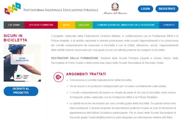 L’altra modifica sostanziale è quella relativa alla possibilità di adesione al progetto anche da parte degli Istituti Secondari di II grado, avendo inserito anche le tematiche relative alla EBike. Quindi, dal prossimo anno scolastico, oltre alle classi 4^ e 5^ della scuola primaria e le 3 classi della scuola secondaria di I grado, potranno partecipare alle attività anche gli alunni e le alunne delle prime due classi delle scuole superiori.