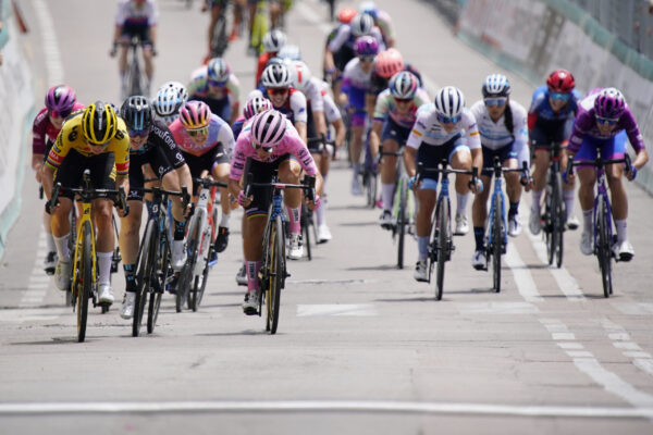 Olbia, 2 luglio 2022 – Al Giro Donne 2022 è ancora un’altra volata finale a decretare la vincitrice di tappa: si riscatta dopo il secondo posto di ieri Marianne Vos (TEAM JUMBO-VISMA), che taglia per prima il traguardo a 2:48:22. Seconda Charlotte Kool (Team DSM), terza posizione e terzo podio consecutivoper Elisa Balsamo (TREK SEGAFREDO) che mantiene la Maglia Rosa sulle sue spalle, oltre a quella Ciclamino e Azzurra. La terza tappa del Giro Donne 2022, la Cala Gonone (Dorgali) – Olbia, vede così sul podio le stesse atlete di ieri, in ordine differente. Marianne Vos, già vincitrice di 3 Giri Donne (2011, 2012 e 2014), segna oggi un altro record assoluto con 31 tappe complessive vinte nella competizione.