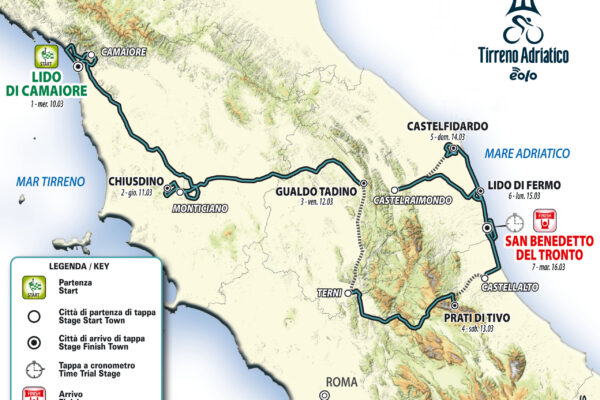 Dal 10 al 16 marzo la Corsa dei due Mari toccherà cinque regioni dell’Italia centrale tra cui la Toscana, l’Umbria, il Lazio, l’Abruzzo e le Marche.