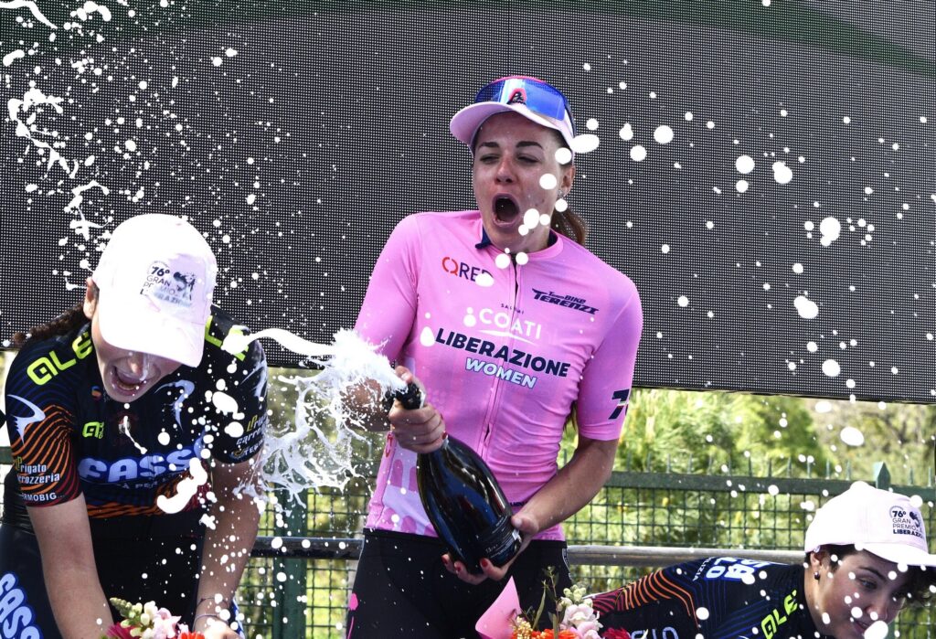 DONNE ELITE – La mattinata del 25 aprile alle Terme di Caracalla si apre con il Coati Liberazione Donne, quinta edizione della corsa femminile del Gran Premio della Liberazione. A conquistare la maglia rosa al termine di 16 giri per un totale di 96 km, è Silvia Zanardi (Bepink) che regola il gruppo in volata e condivide il podio con due atlete della Fassa Bortolo: Cristina Tonetti e Giorgia Bariani.