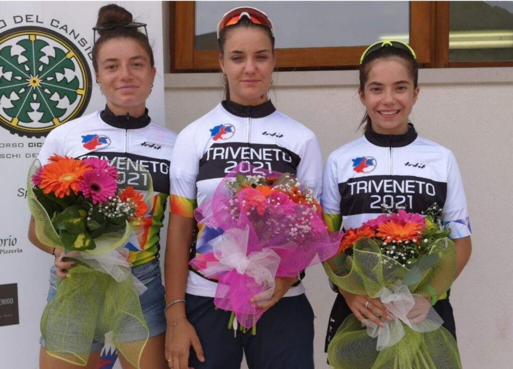 PADOVA – La veronese Asia Sgaravatto del Cycling Team Petrucci di Vigasio (Verona), tra le Allieve; la padovana Linda Sanarini (Scuola Ciclismo Vo') tra le Esordienti del Secondo Anno (nate nel 2007) e l'altra veronese Matilde Rossignoli (Luc Bovolone), tra le Esordienti del Primo Anno (nate nel 2008), sono le leader della classifica provvisoria del Campionato Triveneto Femminile 2021 dopo le prime tre prove svoltesi rispettivamente a San Vito al Tagliamento (Pordenone) il 2 giugno; a Palù di Giovo (Trento) il 4 luglio e a Tarzo (Treviso) il 25 luglio. Le classifiche di società, dopo le tre tappe, vedono al comando tra le Allieve il Cycling Team Petrucci con 46 punti e tra le Esordienti la Scuola Ciclismo Vo' con 76.