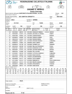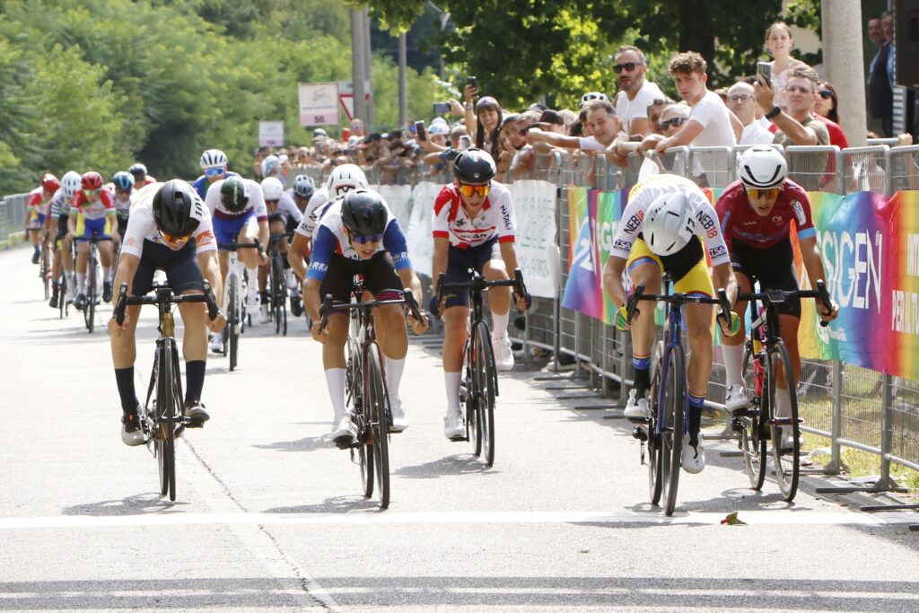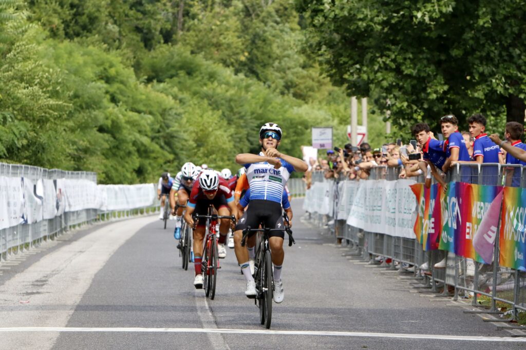 Nel giro conclusivo però che comprendeva anche la salita di San Floriano del Collio affrontata anche lo scorso weekend dai professionisti al Campionato Italiano elite, le carte si rimescolano. Dalle retrovie il gruppo accelera significativamente e sul traguardo arriva un gruppo numeroso. Poderosa l’azione delle Marche che imposta un bel treno per Cingolani che finalizza.