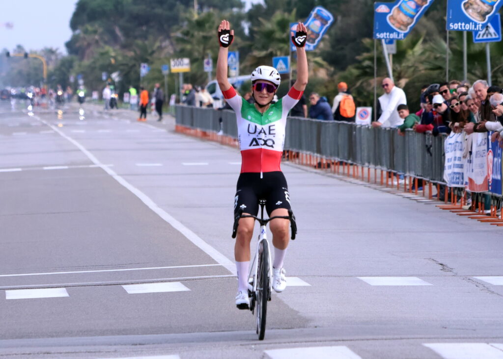 Cinquale di Montignoso, 8 marzo 2026 – Dopo una fuga a cinque la zampata vincente al secondo e ultimo passaggio sulla salita della Fortezza a una quindicina di chilometri dal traguardo, a dimostrare una chiara superiorità. Così Elisa Longo Borghini (foto photobicicailotto) ha portato ancora una volta al trionfo la sua maglia tricolore sul traguardo di Cinquale di Montignoso in provincia di Massa nel Trofeo Oro in Euro – Women’s Bike Race. Per altri aspetti, è stato anche un trionfo della formazione UAE Team Adq in quanto oltre alla splendida vincitrice, altre cinque atlete della stessa squadra sono finite nella Top Ten. Alla gara hanno preso il via 157 atlete e dietro alla scatenata e irresistibile Longo Borghini reduce dal quarto posto nelle Strade Bianche a Siena di sabato, si sono classificate tre sue compagne di squadra ad iniziare dalla Swinkels vincitrice della gara massese nel 2025. In terza posizione in un arrivo frazionato la Wlodarczyk e quarta la Persico.