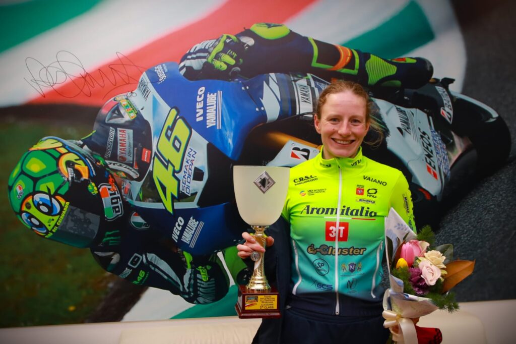 Scarperia,15 febbraio 2026 – Splendida prestazione e vittoria per distacco della trentenne olandese Yvette Maya Kingma nel Trofeo Arti e Mestieri Della Tradizione Mugellana, gara femminile di apertura della stagione in Toscana per le donne élite. La forte atleta del Team Aromitalia 3T Vaiano, già triatleta in passato con due Olimpiadi disputate (a Parigi nel 2024 si inserì nella Top ten) ha sbaragliato il campo e sotto la pioggia battente nel finale ha dato spettacolo con un ritmo sempre possente ed un vantaggio che è rimasto inalterato nonostante sulla testa del gruppo inseguitore ci sia stato il robusto lavoro effettuato dalle atlete della Top Girls Fassa Bortolo. La Kingma è stata inavvicinabile andando a cogliere il successo tra la comprensibile soddisfazione dei tecnici della squadra pratese Ferrari e Baldi e quella del presidente della società di Vaiano Stefano Giugni. L’azione decisiva è nata subito dopo metà corsa con una fuga di sei atlete dalle quali sono poi uscite all’attacco la Kingma e la Pegolo. Quest’ultima ha mollato nel finale la scatenata olandese che quindi si è presentata da sola per ricevere gli applausi degli sportivi presenti. La volata del gruppo a poco più di mezzo minuto è stata vinta dalla piemontese Baima sulla Chiatto. Al via della gara 75 atlete in rappresentanza di 11 formazioni.