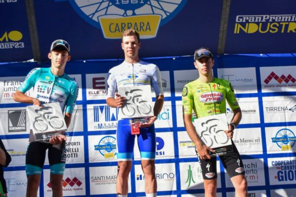 Marina di Carrara,11 maggio 2025 – Con sei giorni di anticipo sulla data del suo compleanno che è quella di sabato 17 maggio, il ventenne russo Ilya Savekin ha festeggiato la ricorrenza, imponendosi in solitaria con una manciata di secondi su di un gruppo di 40 corridori, la trentaseiesima edizione del Gran Premio Industrie del Marmo, gara internazionale per Under 23 organizzata dalla Asd Fausto Coppi del presidente Andrea Borghini. Nella storia della corsa le cui origini risalgono al 1954 quando il valdarnese Emilio Ciolli vinse la prima edizione, quella di Savekin è la decima vittoria di un atleta straniero. Alle spalle del brillante vincitore la volata del gruppo che non è stato in grado di acciuffare il fuggitivo (vantaggio massimo di 16”) è stata vinta da Biagini della VF Group Bardiani CSF Faizanè su Menghini della General Store Essegibi F.lli Curia. Il coraggioso allungo di Savekin, frutto di un eccellente condizione (era giunto quarto 24 ore prima a Marcialla nel Trofeo Giacomo Matteotti) è stato sferrato dal giovane atleta in pianura a sei km dall’arrivo dopo una gara veloce lungo i 4 giri pianeggianti intervallati dalle quattro tornate con la salita di Ponti di Vara nella zona delle splendide cave di marmo. Per il vincitore si tratta del secondo successo stagionale in Italia dopo la gara che aveva vinto a Vittorio Veneto. La competizione allestita sotto la regìa del presidente Borghini e del direttore organizzativo l’ex professionista Fabrizio Convalle, ha visto al via 154 atleti di 30 formazioni, con il prezioso apporto del Comune di Carrara, mentre notevole l’apparato organizzativo predisposto ai fini della sicurezza della gara, ed i complimenti sono d’obbligo.