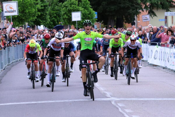 Davanti si forma un drappello di una ventina di unità, composto da alcuni atleti rientrati sui battistrada e alcuni reduci della fuga, come Nicolò Arrighetti. E sono proprio questi corridori a giocarsi la vittoria: il primo a tentare la sorte anticipando la volata è stato Simone Raccani (Zalf), poi imitato da Luca Cavallo (Team Technipes); a indovinare invece l’affondo decisivo è stato Luca Bortoluzzi che ha aperto il gas negli ultimi 500 metri riuscendo a guadagnare quella manciata di metri sufficienti per tagliare per primo il traguardo.