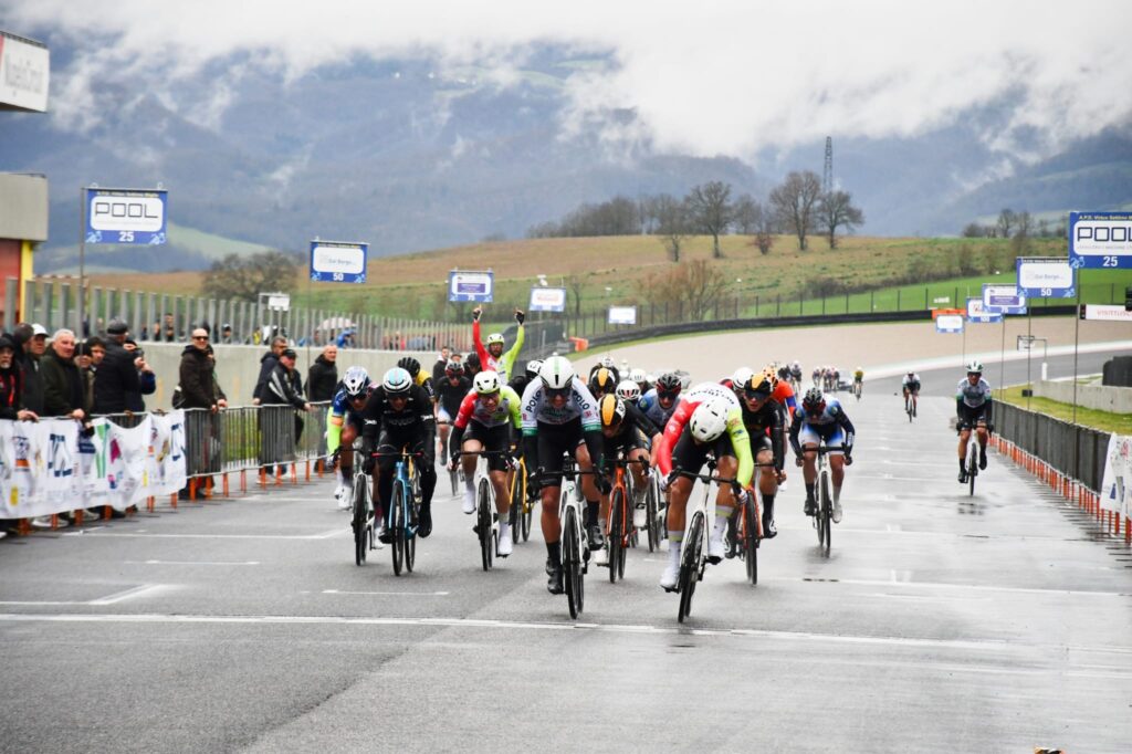 Scarperia,14 febbraio 2026 – È stato internazionale il palcoscenico per l’apertura della stagione ciclistica 2026 élite-under 23 con la pista del Mugello Circuit conosciuta in tutto il mondo, che ha ospitato il Trofeo Campioni Mugellani. E due sono stati i principali e splendidi protagonisti, il vincitore della gara con una superba volata il venticinquenne Davide Boscaro della S.C. Padovani Polo e Renato Favero della Biesse Carrera Premac che dopo una fuga di 50 km, prima con Bertoncelli e quindi da solo è stato raggiunto a 2 km dall’arrivo dal gruppo. In volata la S.C. Padovani è stata splendida non solo per il successo di Boscaro ma anche per il terzo posto di Ursella. Tra i due atleti si è inserito l’ottimo Basso e la sua sconfitta nei confronti del vincitore è stata una questione di un paio di centimetri certificati dal fotofinish. La gara di Scarperia con 25 giri del circuito lungo 5 Km e 245 metri con 15 curve. Gara combattuta e veloce con una fuga nella prima parte di sei atleti (Petri, Spanio, Pavi Degl’Innocenti, Slanzi, Taccone e Franchini, quindi di Attolini e Slanzi. Il tandem viaggiava per diversi chilometri, poi l’abruzzese Attolini scivolava sotto la pioggia che ha accompagnato i corridori dall’inizio alla fine e poco dopo Slanzi era raggiunto dal gruppo. A una cinquantina di chilometri dalla conclusione entravano in azione Bertoncelli e Favero, il primo cedeva dopo qualche chilometro ed era Favero a insistere nella sua spettacolare azione solitaria. Sembrava che l’ottimo pistards azzurro fosse in grado di resistere fino alla fine ma il gruppo incalzava sempre più fino a raggiungerlo, con la volata finale a ranghi compatti e la vittoria di Boscaro per la gioia del direttore sportivo Biagio Conte e di Alessandro Petacchi presente alla gara. Nei primi cinque altri due velocisti attesi come il toscano Magli e Buda. La gara di apertura organizzata dalla Virtus VII Miglio, presente il vicepresidente della Federciclismo Saverio Mwtti, il c.t. azzurro degli Under 23 Marino Amadori e il sindaco di Scarperia San Piero a Sieva Federico Ignesti. Al via 92 corridori e 69 gli arrivati.