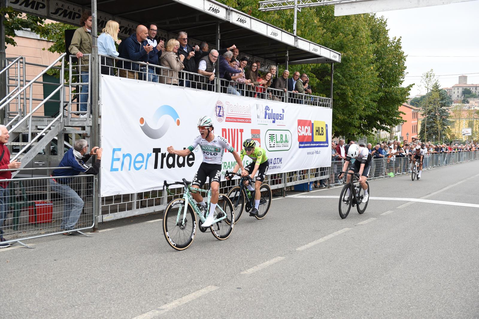Marco Palomba firma la sua prima vittoria stagionale al termine della 72ยช edizione del Gran Premio Colli Rovescalesi, corsa per Elite e Under 23 disputata a Rovescala, nel cuore dellโOltrepรฒ Pavese. Il corridore vicentino della Padovani Polo Cherry Bank si รจ imposto nello sprint a tre, battendo il danese Dennis Lock (General Store Essegibi F.lli Curia) e il britannico George Wood (Zappi Racing Team) dopo 137 km di gara (foto Rodella).