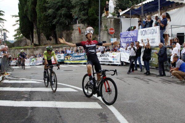 Una volta tornato il gruppo compatto, al suono della campana si sgancia al comando della corsa un drappello di 10 corridori. È l’azione che decide le sorti della competizioni, è sprint tra questi 10 atleti e la ruota più veloce è quella di Mario Martini che vince in maniera netta e a braccia alzate, disegnando una delle giornate più belle della sua carriera.