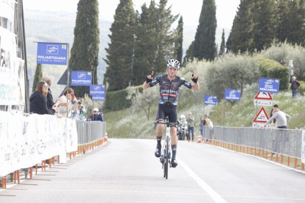 Nel Memorial Fabrizio Fabbri, ex campione toscano del pedale, dalla Fattoria Rocca di Montemassi in Maremma al Castello di Albola sulle colline del Chianti, ha staccato tutti a dieci km dall’arrivo.