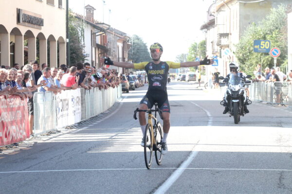 Livraga (Lodi), martedi 5.9.2023. A distanza di un anno s’è ripetuto nella Coppa Comune di Livraga, 69a edizione, il dominio dell’Hopplà- Petroli Firenze- Don Camillo). Arricchita anche dal 2° Memorial Piero Marchesi (presidente e ultimo scomparso nel 2020, tra i fondatori dell’ Us Livraga, organizzatrice dell’evento con il contributo sempre di tutto il paese, regista Gianni Marazzi) assegnato al vincitore. E’ la sola corsa per Elite/Under 23 che il calendario lodigiano presenta ed è il richiamo sportivo maggiore in paese della Sagra di S. Gennaro ( non è quello di Napoli).