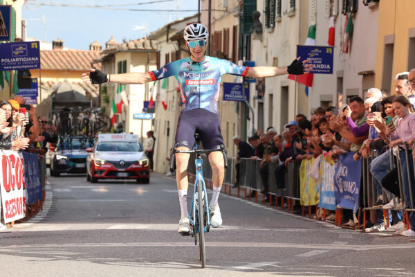 Marcialla, 10 maggio 2025 – Tre brillanti e indiscussi protagonisti nel 71° Trofeo Matteotti che si è disputato a Marcialla sulle colline della Val di Pesa a metà strada tra Firenze e Siena. Con lo splendido vincitore per distacco Matteo Ambrosini della MBHBank Ballan Colpack, il valdarnese Regnanti giunto secondo e Bracalente compagno di squadra del vincitore. La loro fuga è iniziata a 90 km dal traguardo, quando si sono sganciati da un gruppo di 16 fuggitivi promotori della fuga dopo 45 km. Coloro che sono rimasti ad inseguire hanno perso sempre più terreno ed ancora peggio ha fatto il gruppo più folto tanto da finire ad oltre 5 minuti. Il terzetto ha viaggiato di comune accordo fino a 10 km dall’arrivo quando forti del vantaggio di essere in due e con un perfetto gioco di squadra, Ambrosini ha allungato. Regnanti, valdarnese del Team Hopplà e campione toscano élite, ha provato a replicare ma Ambrosini è volato verso il traguardo accolto dagli applausi del pubblico, mentre per il toscano c’era la seconda piazza sul traguardo di Piazza Brandi. Tutta qui la storia del “Matteotti 2025” organizzato da 39 anni a Marcialla dalla Pol. Aics di Firenze rappresentata dalla presidentessa Enrica Ignesti e dal presidente della sezione ciclismo Gianni Cantini, con la solita appassionata collaborazione del Comitato Sportivi di Marcialla capitanato da Armando Nesi. Quest’anno al via 174 atleti di 31 società con israeliani, russi e messicani alla partenza data dal sindaco di Barberino Tavarnelle David Baroncelli, presenti Elisabetta Nencini figlia del grande campione mugellano primo vincitore del Trofeo Matteotti nel 1952, e il presidente del Comitato Regionale Toscana di ciclismo Luca Menichetti. Il cambio di percorso ha dato buoni risultati ed è stato sicuramente più impegnativo anche se troppi atleti (quelli del gruppo) sono apparsi rinunciatari accusando un distacco pesantissimo. Il vincitore Ambrosini è nato ad Asiago e risiede a Canove di Roana in provincia di Vicenza, è diplomato in meccanica e prima di arrivare nel ciclismo è stato un pattinatore in pista lunga vincendo vari titoli italiani. In questa stagione si era imposto nella a fine febbraio nella classica Coppa San Geo, quindi altre buone prove disputando anche il Tour de Bretagne.