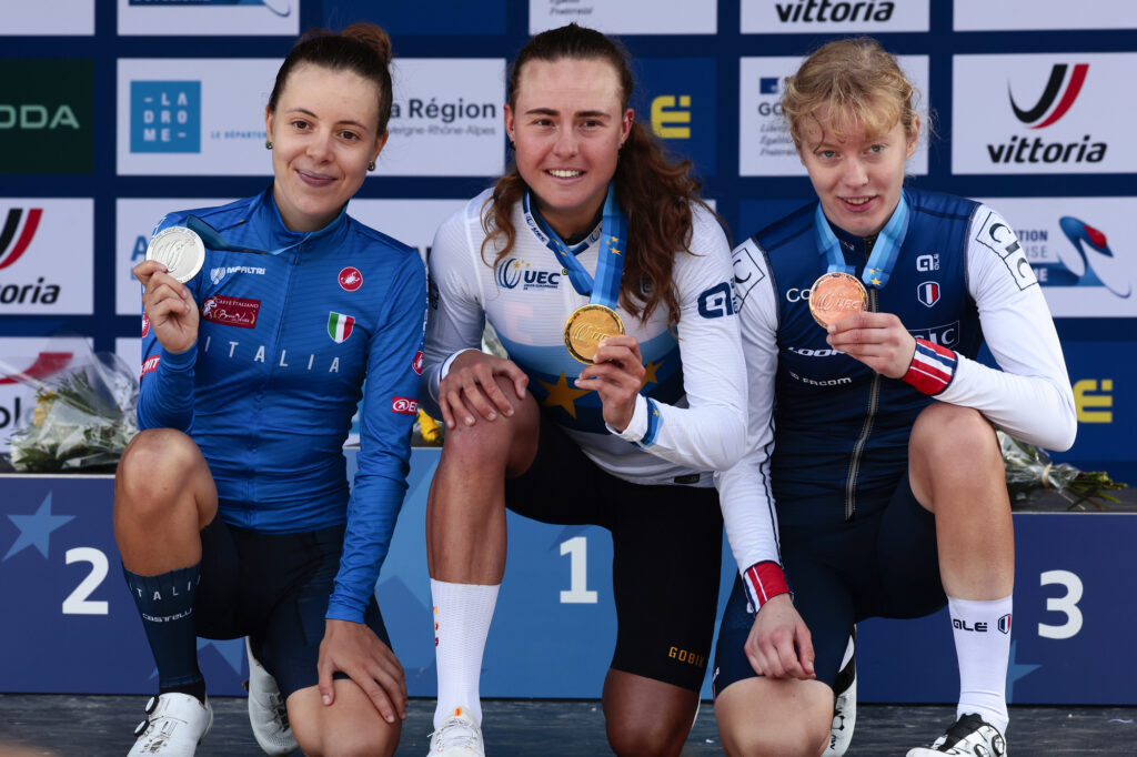 “Devo fare un monumento a Federica Venturelli – ha detto al termine la 21enne marchigiana, già quarta al mondiale in Africa – che mi ha aiutato a sistemare la catena e poi mi ha letteralmente trascinato per riprendere il gruppo. Negli ultimi chilometri sapevo di essere la più veloce in volata. Ho stretto i denti in salita ma quando Paula è scattata, all’ultimo chilometro, ci siamo guardate un po’ e questo gli ha permesso di andare via. Forte dell’esperienza del mondiale ho atteso la volata e sono contenta di questa medaglia.”