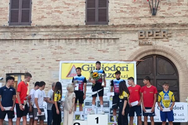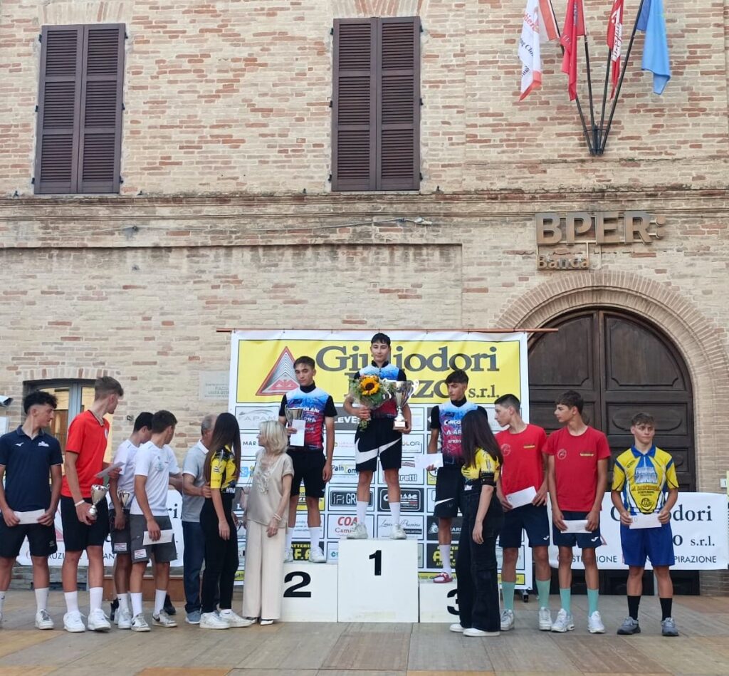 MONTECASSIANO – En plein dei ragazzi del Zero24 Cycling Team che hanno monopolizzato l’intero podio del Trofeo Letizia e Roberta Tomaificio per la categoria allievi: primo Thomas Minestrini, secondo Teo Lancioni e terzo Filippo Cingolani nella corsa disputata a Montecassiano con l’organizzazione dell’omonimo Velo Club. Nel complesso la manifestazione è riuscita alla perfezione soprattutto per la presenza dei partecipanti giunti a Montecassiano da Emilia Romagna, Toscana ed Umbria, oltre che dal resto delle Marche. Sulla distanza di circa 72 chilometri, il percorso nervoso attorno Montecassiano e il gran caldo hanno creato tanta selezione, sicchè si è formato un drappello di undici unità in lotta per i posti d’onore dove Minestrini ha potuto confezionare il primo centro stagionale. Con un gap di 15 secondi al secondo e al terzo posto i compagni di squadra Lancioni e Cingolani, leggermente defilati Niccolò Renzi della Civitanova Bike Academy (quarto) e Samuele Uguccioni dell’Alma Juventus Fano (quinto).