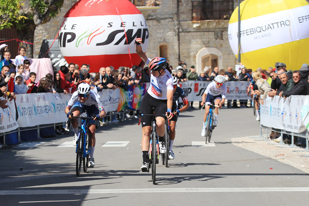 La nativa di San Bassano dell’UAE Development Team ha trionfato sul traguardo di Motta Montecorvino sfruttando una scivolata della compagna di squadra Lara Gillespie. Nonostante la caduta a 200 metri dal traguardo però la Gillespie si è prontamente rialzata aggiudicandosi così la classifica generale con 3’01” su Venturelli.
