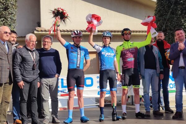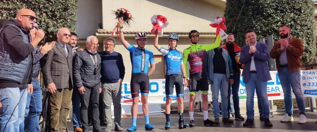 E’ Tommaso Bambagioni, grossetano della CPS Professional Team, il vincitore della Coppa Palazzolo 2023, la classica Juniores che si è corsa Lunedì sulle strade di Castrocielo nella Bassa Ciociaria. Un successo cercato con tenacia, in questa prima parte di stagione, dal ragazzo di Clemente Cavaliere ed ottenuto in una delle gare che hanno fatto la storia del ciclismo laziale. E a testimoniare il valore della Coppa Palazzolo sul palco c’era l’ex prof Pino Petito che fu il vincitore dell’edizione 1978 dopo un battaglia a colpi di pedale con il siciliano Benedetto Patellaro. Petito ha ricevuto dalla mani del Sindaco di Castrocielo il Premio Palazzolo, istituito dall’amministrazione Comunale per ricordare i vincitori della storica corsa di Pasquetta. Pubblico delle grandi occasioni ad assistere all’evento per la gioia degli organizzatori isolani dell’ASACI sostenuti dal patrocinio del Comune di Castrocielo. Dopo la partenza nella parte bassa del paese i corridori hanno percorso 7 volte la salita che porta nel centro storico del paese toccando anche il vicino Comune di Roccasecca. La presenza del GPM ha stimolato gli attacchi nei vari passaggi e così è nata una fuga con Leonardo Consolidani (Team Coratti), Raffaele Tela (Fortebraccio), Riccardo Lorello (Regia Congressi Seiecom Valdarno),Emanuele Rocchi e Ivan Toselli (Vangi Sama Ricambi Pirata) che ha tenuto desta l’attenzione degli appassionati per alcuni giri.