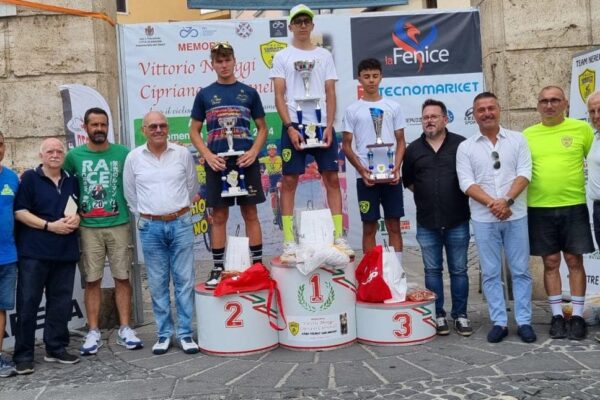 Anagni ha reso omaggio, come ogni anno, a Vittorio Nereggi e Cipriano Ciprianelli, due personaggi che hanno scritto pagine indelebili nella storia sportiva della città dei Papi. La loro passione e l’impegno profuso in ambito ciclistico non sono stati mai dimenticati e la riprova è stata la presenza Domenica mattina ad Anagni delle massime autorità cittadine e dei vertici regionali della Federciclismo. Il Trofeo Vittorio Nereggi e Cipriano Ciprianelli, organizzato con la solita cura ed attenzione dal Team Nereggi Coratti, era riservato alla categoria Allievi e si svolgeva in massima parte nella parte bassa di Anagni. La partenza in perfetto orario, agli ordini dei Direttori di Corsa Mauro Benacquista e Giuseppe Greci supportati dalle Scorte Tecniche del Team Vessella, sotto la monumentale Porta Cerere, uno dei simboli della cittadina ciociara. Nel corso degli otto giri sul circuito che toccava anche la via Anticolana si faceva subito selezione e il primo ad aprire le ostilità era l’atinate Cristian Di Paolo (Velosport Ferentino Ciclisti Sorani). Dopo un paio di giri la reazione del Team Coratti faceva nascere la fuga decisiva con un gruppetto di una dozzina di unità che diventavano i protagonisti di giornata. Nel finale, caratterizzato dalla salita che portava nel centro storico di Anagni, si involava Filippo Antonelli (Team Coratti) che andava a prendersi gli applausi del pubblico in attesa sotto Porta Cerere. Una vittoria meritata per il ragazzo di Forano che proprio sullo stesso traguardo l’anno scorso si era piazzato secondo nella gara Esordienti. La piazza d’onore se l’aggiudicava il brillante Raffaele Luigi Palombi (Team Cesaro Franco Ballerini) che per diversi chilometri aveva tenuto testa ad Antonelli. Lo sprint per la terza posizione vedeva prevalere Brian Paris (Team Coratti) che batteva Flavio Colaceci (Logistica Ambientale Spezia Bike) e Alessandro Biscossi (Team Coratti). Cerimonia di premiazione con il Sindaco anagnino Daniele Natalia accompagnato dagli Assessori Luigi Pietrucci e Riccardo Natalia. A portare il saluto di FCI Lazio nella bella manifestazione erano presenti il presidente Maurizio Brilli, il suo vice Tony Vernile, il consigliere regionale Alfio Sciuto, il presidente della STR Valerio Agnoli , il presidente del CP Frosinone Roberto Soave con il consigliere Sebastiano Retarvi e il presidente del CP Roma Agildo Mascitti. I ringraziamenti agli ospiti, ai partecipanti alla gara ed agli sponsor sono arrivati da Luigi e Claudio Nereggi e da Piero Ciprianelli, figli di Vittorio e Cipriano, che hanno evidenziato il grande affetto riscontrato anche stavolta per i loro genitori apprezzando il grosso lavoro della Polizia Locale e di tutti i volontari che si sono messi a disposizione della macchina organizzativa. Un premio speciale da parte delle famiglie Nereggi e Ciprianelli è stato riservato a Mario Giorgilli che si è affiancato in maniera determinante allo staff organizzatore. Sabato prossimo per il Team Nereggi Coratti ci sarà un altro impegno ad Altipiani di Arcinazzo dove allestirà la gara di sprint e gimkana Giovanissimi dedicata a Meo Passeri e Arturo Santelia.