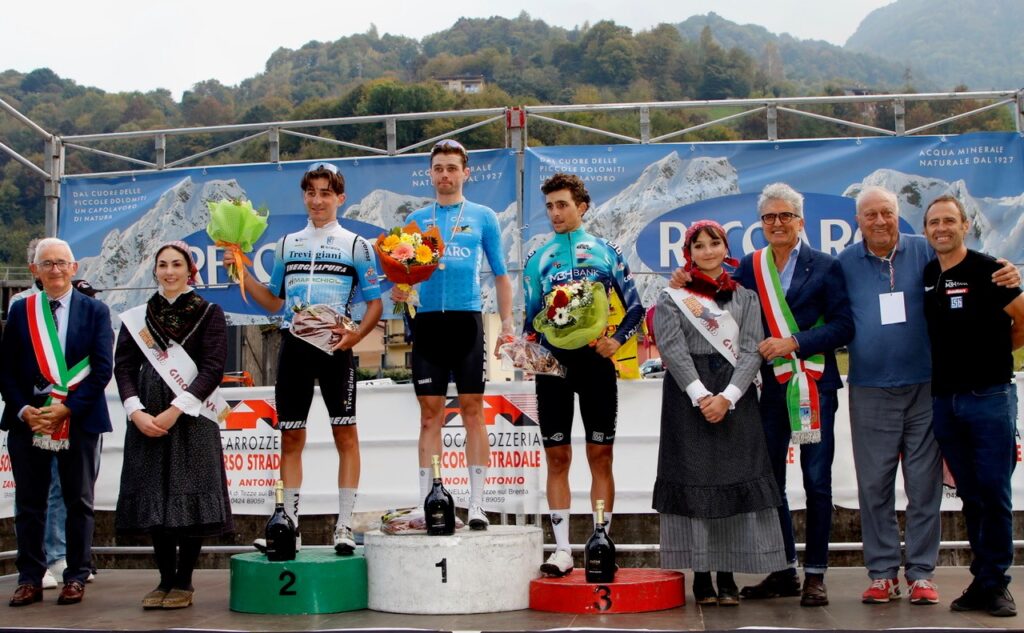 Secondo posto per Riccardo Perani (Trevigiani Energiapura Marchiol), vincitore proprio domenica scorsa a Somma Lombardo, e terzo posto per l’abruzzese Lorenzo Masciarelli della MBHBank Ballan CSB Colpack, che negli ultimi 15 chilometri era stato compagno di fuga del vincitore.
