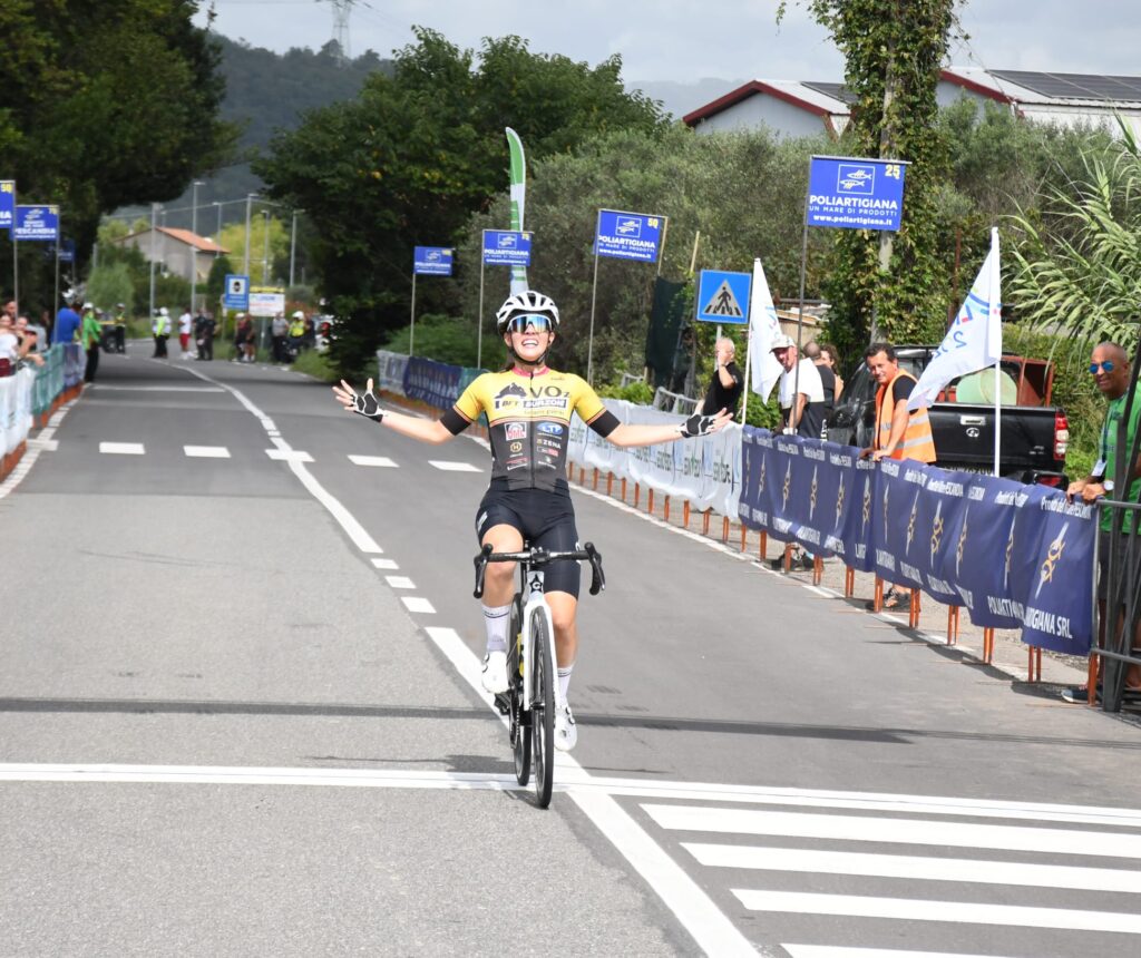 Nel finale la squadra piacentina ha sfruttato la superioritร numerica: prima lโattacco di Martina Orsi, poi quello della gemella Alessia, che con unโazione decisa ha fatto il vuoto conquistando la vittoria con 24โ di vantaggio sul gruppetto inseguitore, regolato in volata da Elisa Bianchi davanti a Elisa Ferri.