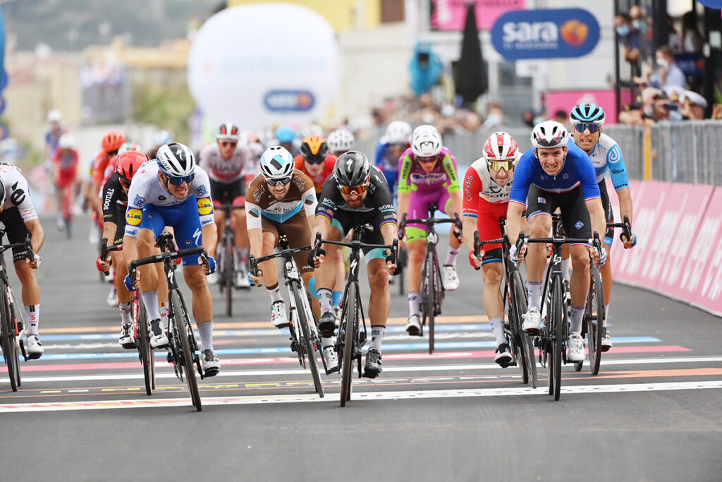 Villafranca Tirrena, 6 ottobre 2020 – Arnaud Démare (Groupama-FDJ) ha ottenuto la sua seconda vittoria di tappa al Giro d'Italia (dopo la 10a frazione a Modena del 2019). Ha battuto al photofinish Peter Sagan (Bora – Hansgrohe) e Davide Ballerini (Deceuninck-Quick Step) sul traguardo di Villafranca Tirrena, nell'ultima tappa della Corsa Rosa in Sicilia.