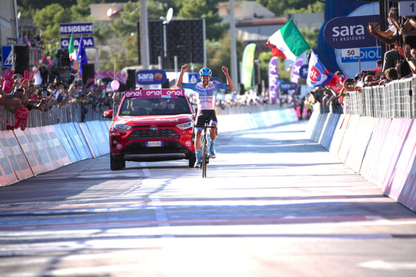I suoi compagni di fuga Salvatore Puccio (Team Ineos Grenadiers) e Matthew Holmes (Lotto – Soudal) hanno completato il podio di giornata mentre João Almeida (Deceuninck-Quick Step), arrivato con il gruppo, ha conservato la Maglia Rosa alla vigilia della frazione di montagna di Roccaraso.