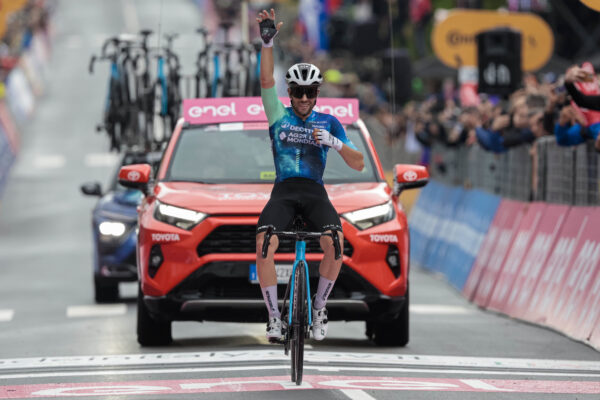 Sappada, 24 maggio 2024 – Andrea Vendrame (Decathlon AG2R La Mondiale Team) ha vinto la diciannovesima tappa del Giro d'Italia 107, la Mortegliano-Sappada di 157 km. Al secondo e terzo posto si sono classificati rispettivamente Pelayo Sanchez (Movistar Team) e Georg Steinhauser (EF Education – EasyPost). Tadej Pogacar (UAE Team Emirates) rimane in Maglia Rosa di leader della classifica generale.