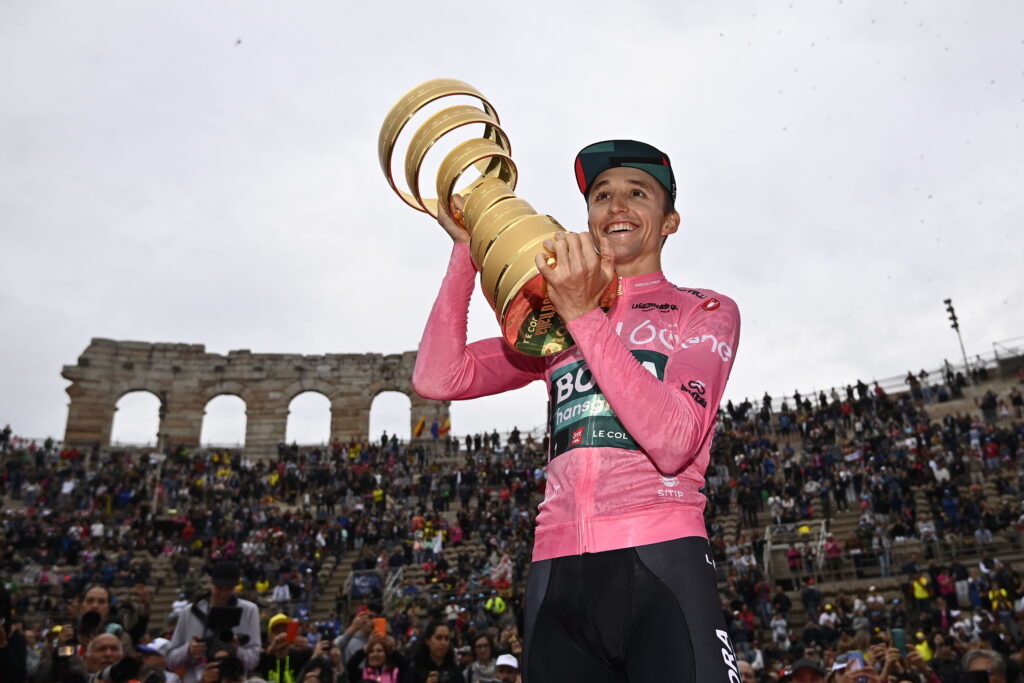 Verona, 29 maggio 2022 โ Verona ha incoronato Jai Hindley (Bora-Hansgrohe). Il 26enne di Perth controlla i diretti avversari nella cronometro conclusiva e porta a casa un Giro d’Italia carico di significati per il ciclismo italiano a cominciare da uno splendido Matteo Sobrero, che si conferma tra i migliori al mondo nelle prove contro il tempo vincendo la prova davanti a Thymen Arensman (Team DSM) e Mathieu van der Poel (Alpecin-Fenix).